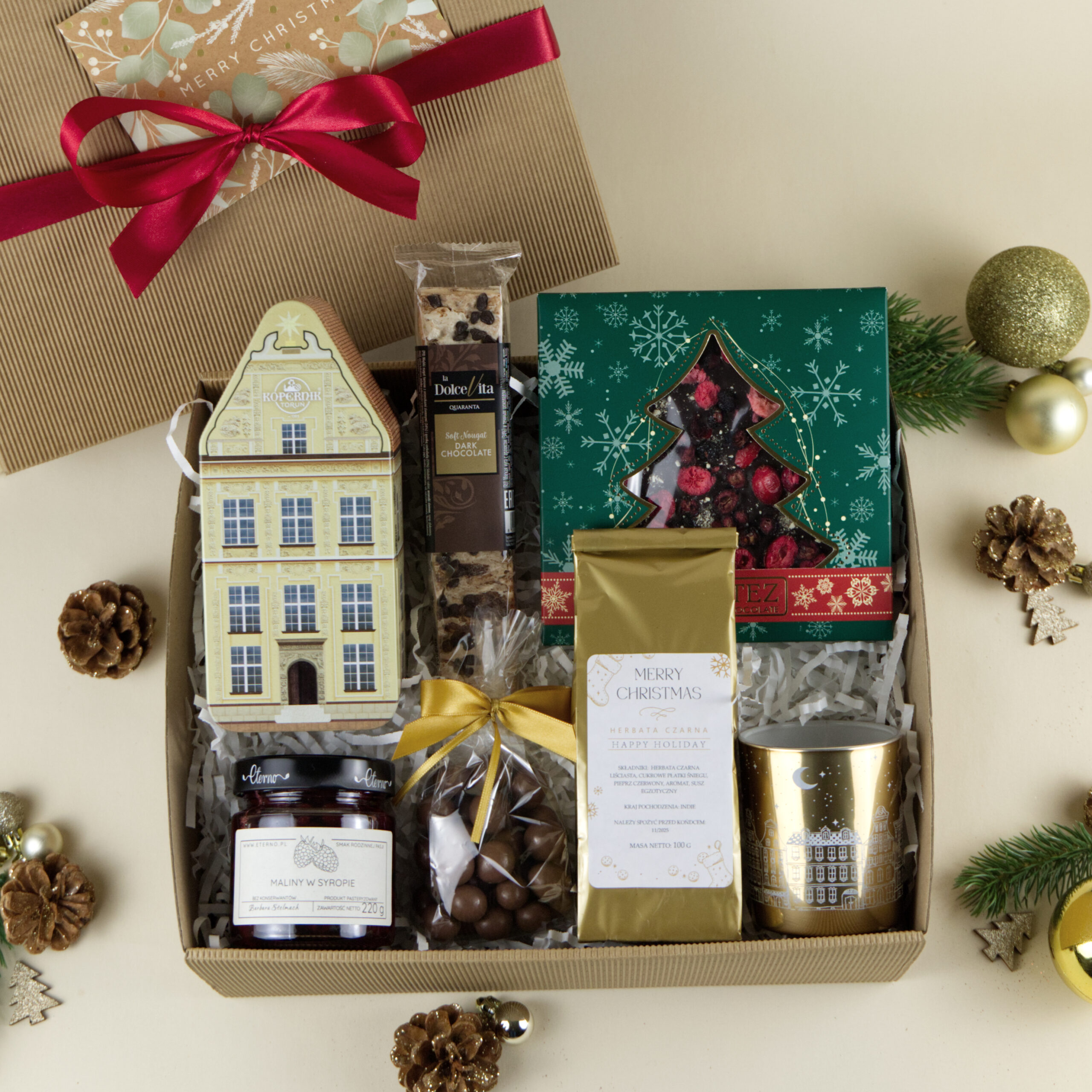 - Herbata liściasta czarna Happy Holiday. Zawiera m.in. pieprz czerwony, susz egzotyczny (jabłko, hibiskus, owoc aronii, rodzynka, skórka róży, owoc śliwki, owoc wiśni, skórka pomarańczy, owoc głogu, kokos, czarna porzeczka)