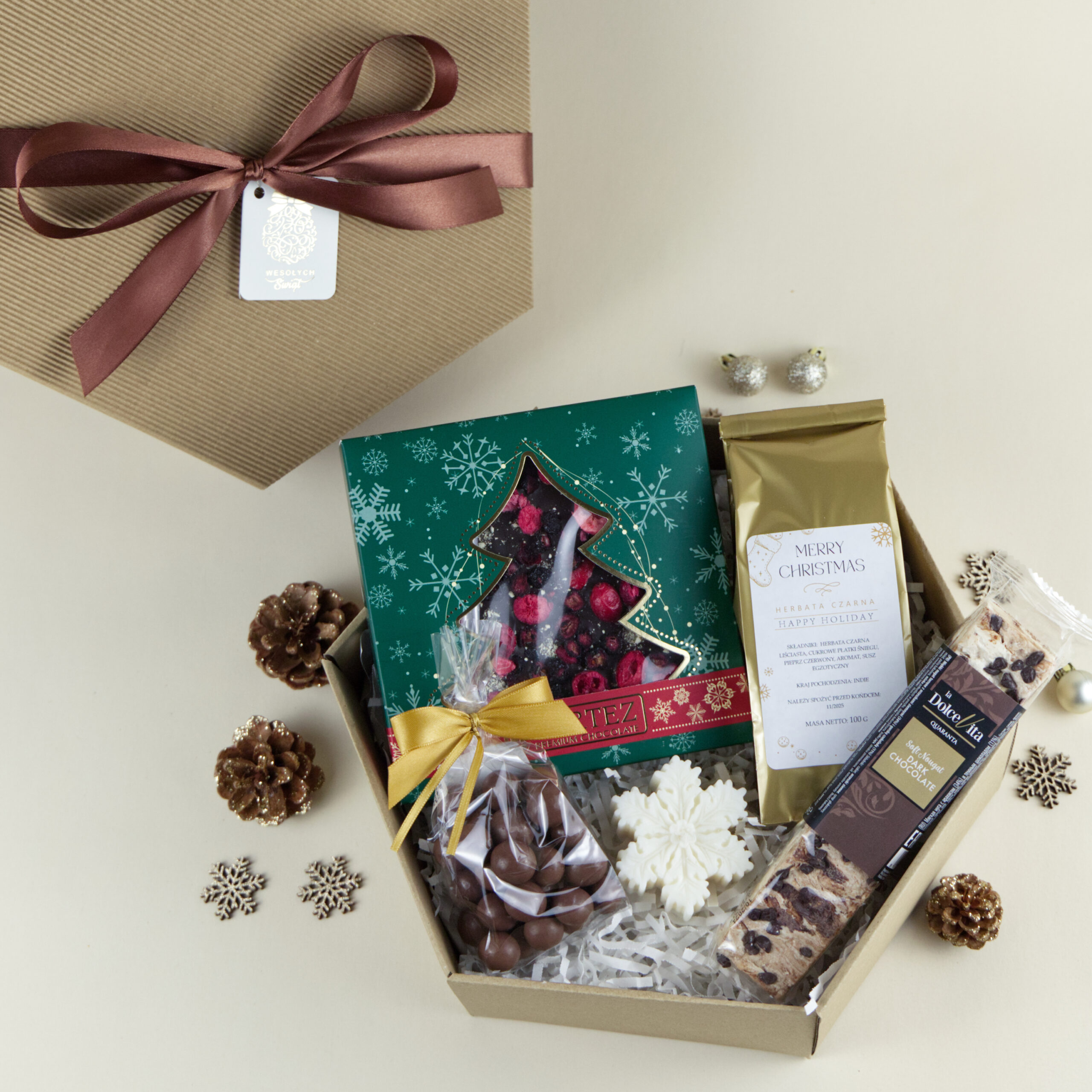 - Herbata liściasta czarna Happy Holiday. Zawiera m.in. pieprz czerwony, susz egzotyczny (jabłko, hibiskus, owoc aronii, rodzynka, skórka róży, owoc śliwki, owoc wiśni, skórka pomarańczy, owoc głogu, kokos, czarna porzeczka)
